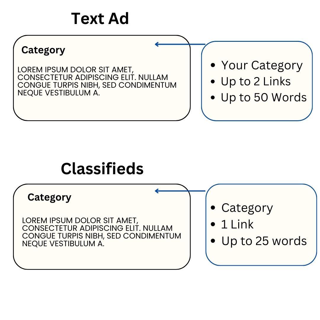 Text Ad$300-$500